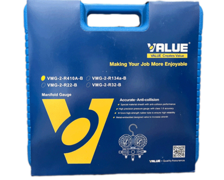 گیج شارژ گاز دوقلو ولو مدل VALUE VMG-2-R410A-B برای اندازه گیری گاز های R410A ,R134A ,R22 و R407C مورد استفاده قرار می گیرد. همچنین از گیج شارژ گاز دوقلو ولیو برای تخلیه و شارژ سیستم از گاز مبرد و هواگیری نیز استفاده می شود.